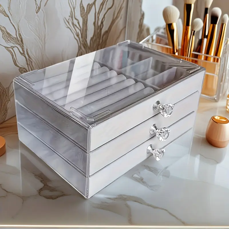 منظم ادوات شيك وشفاف 3 أدراج، يخلي أكسسواراتك كلها مترتبة قدام عينيك بشكل منظم وأنيق. مناسب لتنظيم الخواتم، السلاسل، الحلقان،