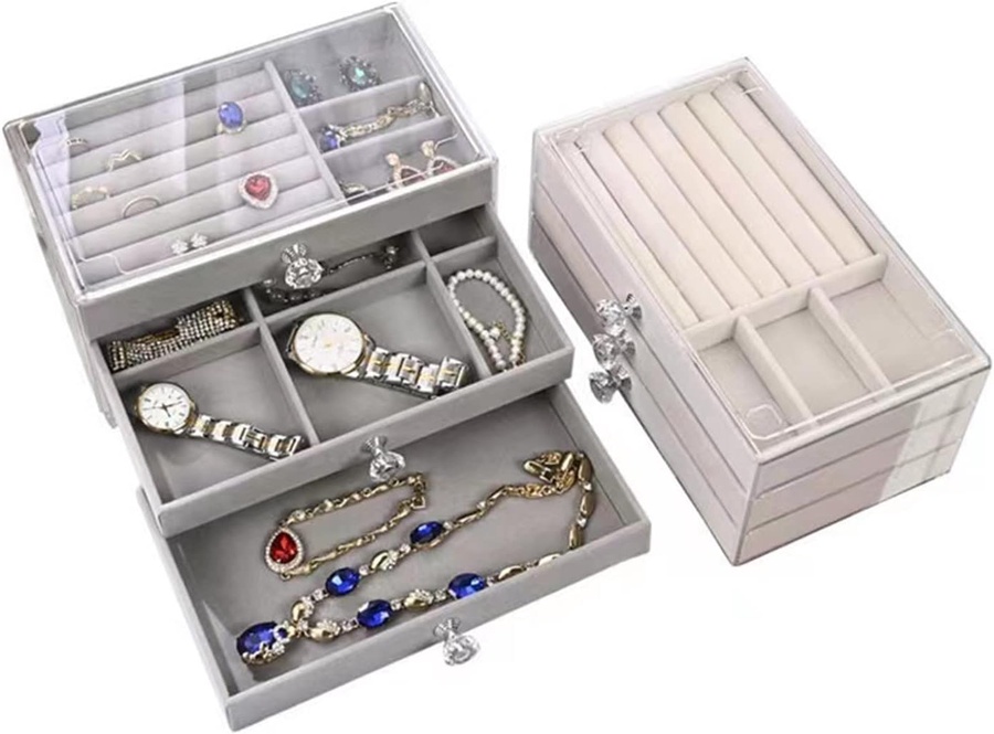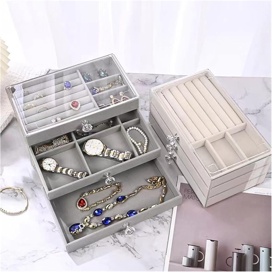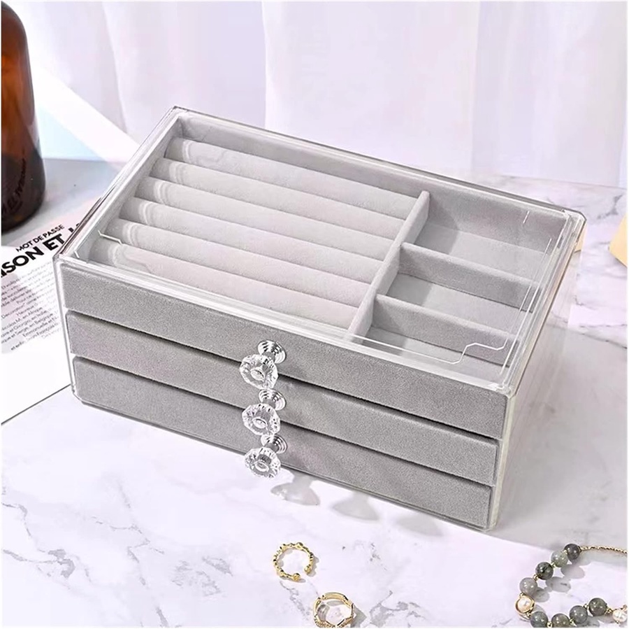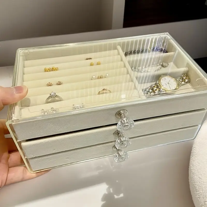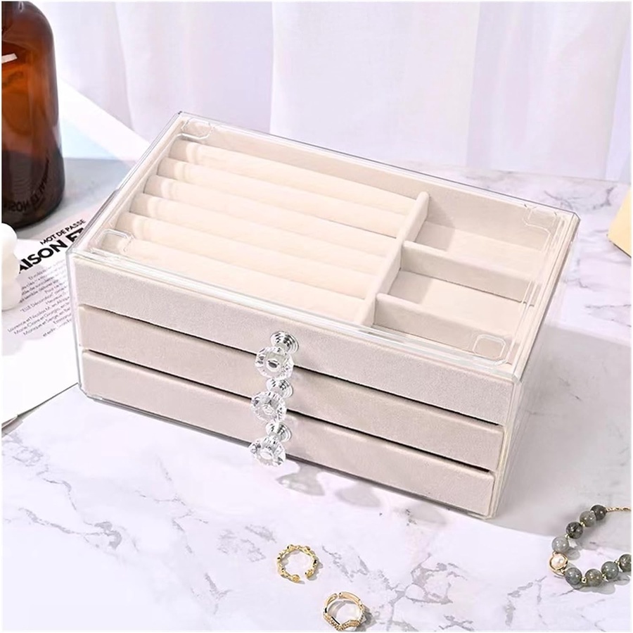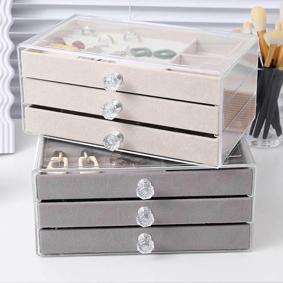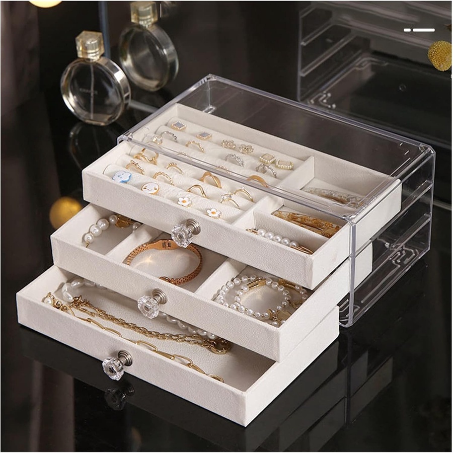 ✅ هينظملك الدنيا ويوفرلك وقت وأنتي بتدوري على أكسسواراتك محتوى العبوة: 1 × منظم ادوات بـ 3 أدراج مبطنين بقطيفة