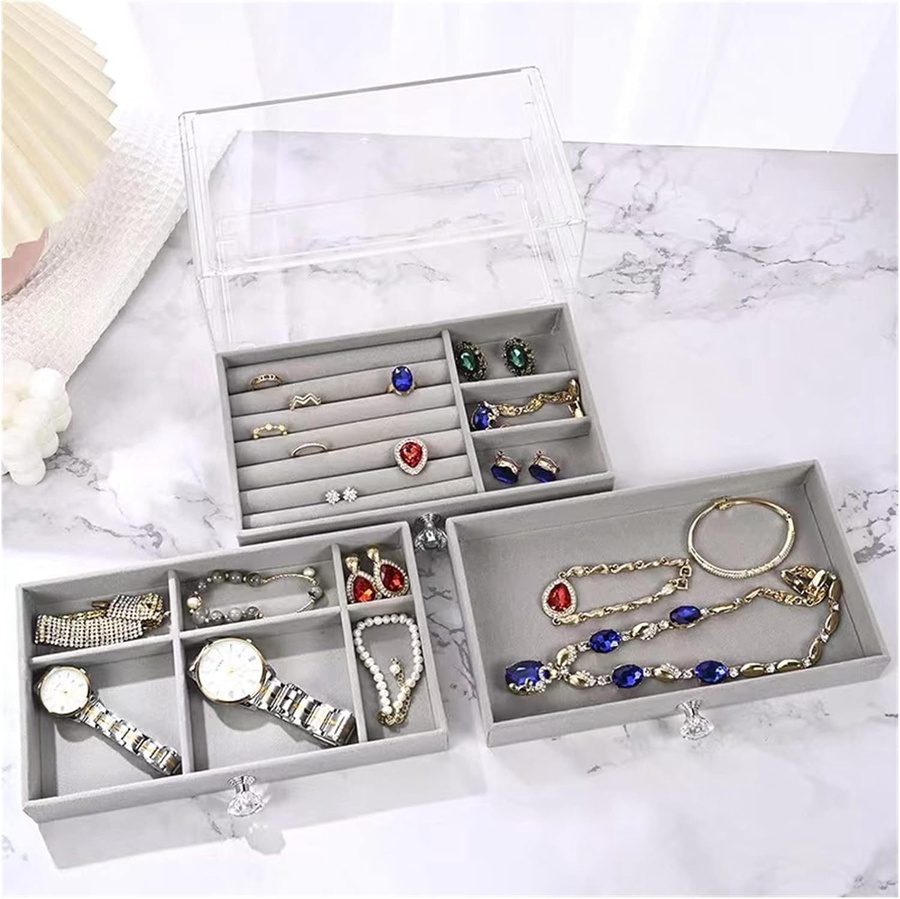 منظم ادوات شيك وشفاف 3 أدراج، يخلي أكسسواراتك كلها مترتبة قدام عينيك بشكل منظم وأنيق. مناسب لتنظيم الخواتم، السلاسل، الحلقان، والأساور. المواصفات: خامة: أكريليك شفاف عالي الجودة عدد الأدراج: 3 أدراج واسعة جوه الأدراج مبطنة بقطيفة فخمة لحماية المجوهرات تصميم ستاكيبل (ينفع تضيف عليه أدراج تانية لو تحب) مقاس مناسب للترابيزات والكونسول